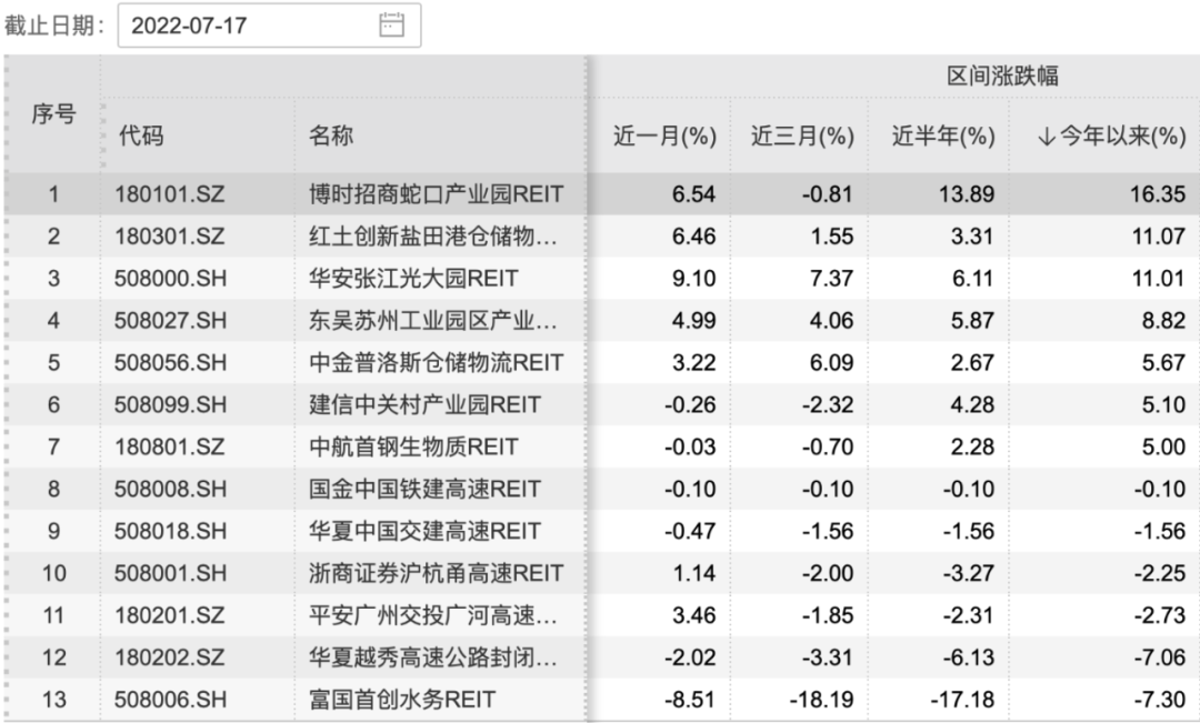 与此同时,中国的公募REITs虽然起步较晚,但发展势头强劲。自2021年以来,公募REITs市场保持稳定的扩容节奏。今年上半年,尽管市场行情不佳,仍有3只公募REITs基金成功发行,总规模达到177亿元。在统计的13只产品中,有3只产品涨幅超过10%,业绩表现亮眼。