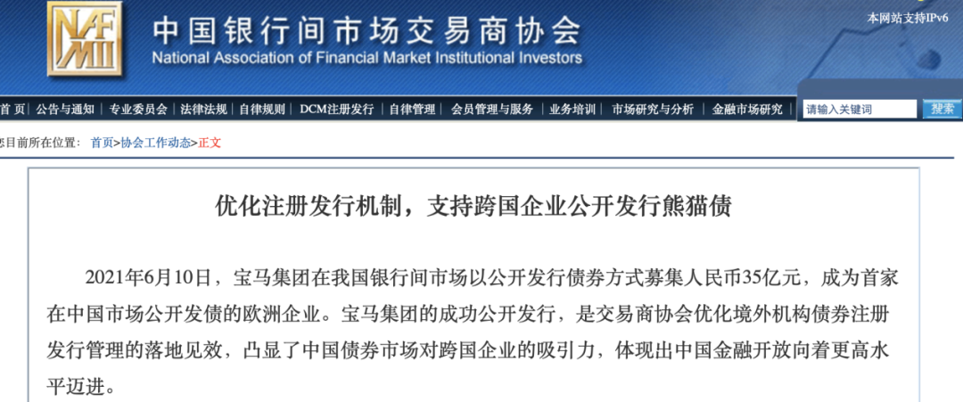 首单真正纯外资企业背景公开发行的熊猫债正式亮相!6月11日,中国银行间市场交易商协会官网信息显示,宝马集团于本月10日在我国银行间市场成功公开发行35亿元人民币债券,成为首家在中国市场进行此类操作的欧洲企业。