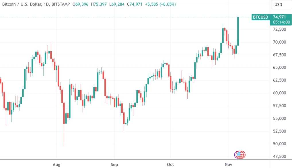 此外,特朗普的两个儿子埃里克和小唐纳德也刚启动了中心化金融(DeFi)行业的创业项目,这一举动进一步表明了特朗普家族对加密货币行业的支持和看好。截至发稿时,比特币日内暴拉5600美元,创下历史新高。