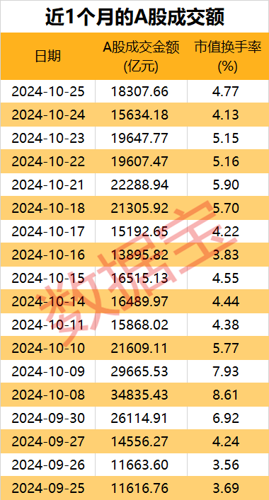 值得注意的是,A股市场成交额已连续一个月维持在万亿元以上,自9月25日以来,市场成交额始终保持在高位,市值换手率也持续高于3.5%,最高曾触及8.61%,显示出市场交投活跃的态势。