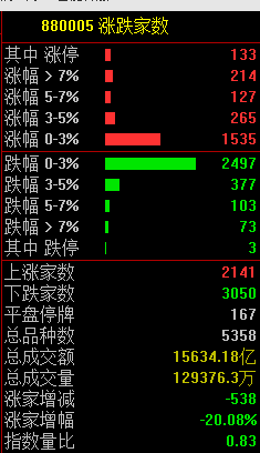 截至收盘,沪指下跌0.68%,深成指下跌1.27%,创业板指下跌1.37%。市场个股呈现跌多涨少的局面,共有2141只个股上涨,其中133只个股涨停,而下跌的个股则达到了3050只。