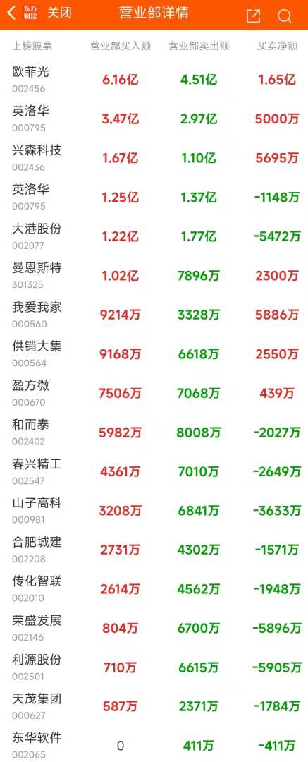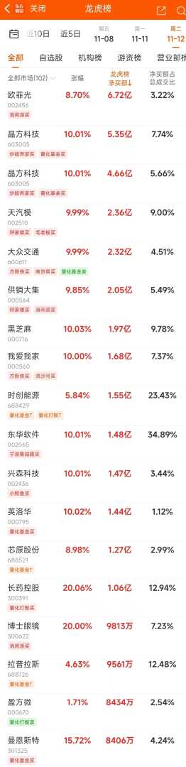 在当日龙虎榜上榜的个股中,资金净流入最多的为欧菲光,金额高达6.72亿元。数据揭示,该股日内大幅上涨8.7%,成交额攀升至208.66亿元,换手率亦高达34.81%。(请注意,由于存在多种上榜龙虎榜的情形,本文图表中可能包含重复个股的展示)