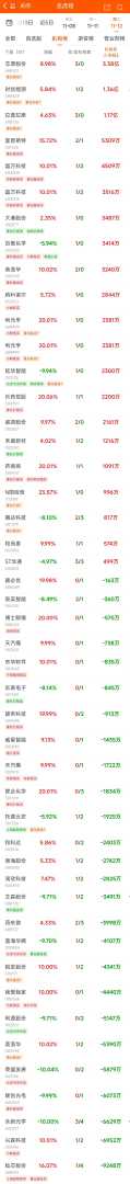 机构方面,日内机构席位净买入个股共计18只。其中,芯原股份备受青睐,机构净买入额达到3.38亿元。时创能源同样获得机构青睐,净买入额为1.36亿元。然而,灿芯股份则遭到机构席位的净卖出,金额达到9248万元。