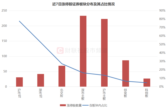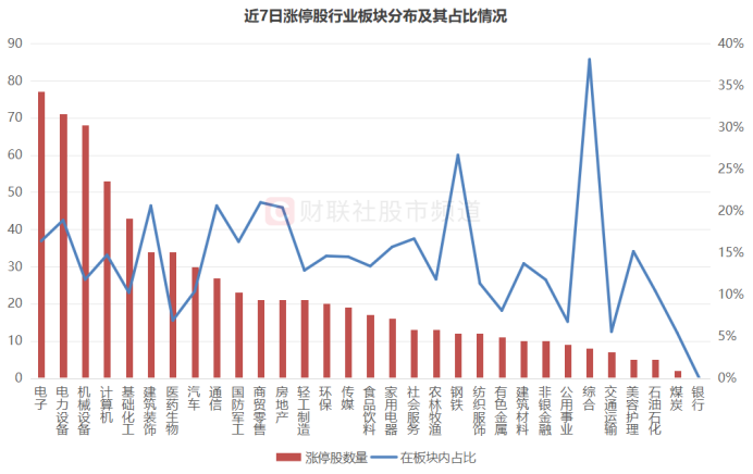 注:近7日涨停股证券板块分布及其占比情况