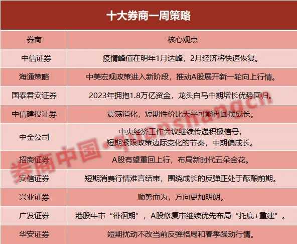 【十大券商一周策略】重磅会议定调,2023年A股迎新一轮向上行情