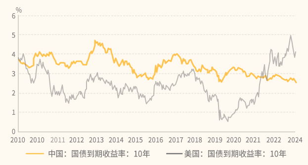 其次,对标利率的不同也是两者之间的显著差异。国内企业发行债券时对标的是国债利率,而海外发行的美元债则对标美国国债利率。中美利差长期存在,尤其是近两年美债收益率持续高位,使得同一发行主体的美元债和境内债票面利率存在差异。