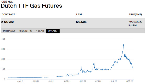 英国通胀形势同样严峻,9月CPI同比上涨10.1%,高于市场预期,与此前7月创造的40年来新高持平。能源价格高企是推升欧洲通胀的重要因素之一,尽管近期欧洲天然气价格有所下跌,但与去年同期相比仍高出近2倍。