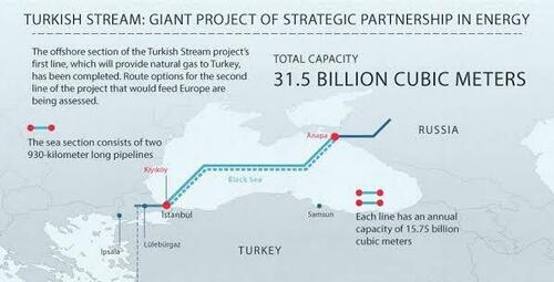 “土耳其溪”天然气管道项目于2020年投入运营,年输气能力高达315亿立方米,是俄罗斯向土耳其及欧洲南部输送天然气的重要通道。该管道从俄罗斯沿海经黑海海底至土耳其西北部城市基伊科伊,分为一线和二线,分别向土耳其和欧洲南部供气。