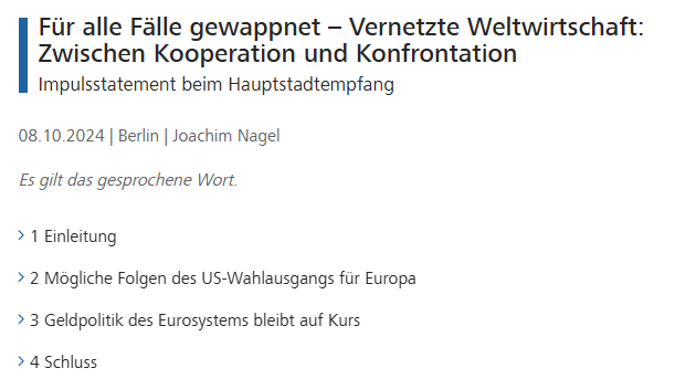 在10月8日于柏林举办的德国央行年度招待会上,纳格尔指出,特朗普的胜选可能带来美国关税的大幅提升、财政政策的扩张性增强以及移民政策的严格化。这些措施一旦实施,或将导致欧元区和德国的经济增长出现显著下滑。