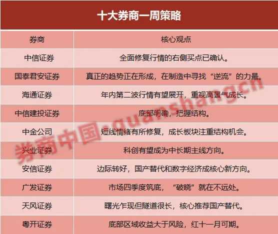 (原标题:【十大券商一周策略】全面修复行情明确,国产替代成核心推荐)
