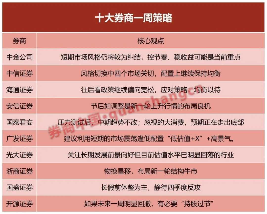 摘要:【十大券商策略综述:市场经历压力测试后,中期向好趋势未变!若未来一周市场明显回调,持股过节策略备受推崇】国君策略重申,市场虽节前遭遇负面扰动小幅回调,但中期趋势不改,宽松政策超预期及无风险利率下行将驱动市场前行。