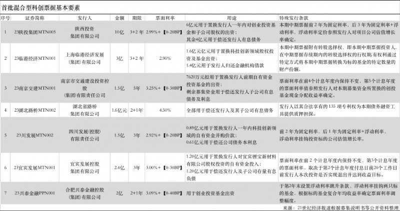 东方金诚研究发展部高级分析师冯琳梳理发现,首批7只票据中有5只采用“前n年固定利率+第n+1年起浮动利率”的结构设计,浮动利率与被投资企业的估值增长率或股权投资收益率挂钩。例如,“23宜宾发展MTN001”的票面利率在第3个计息年度取决于是否实现退出并达到收益目标。