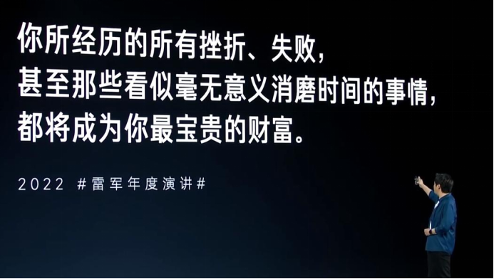 在马云、刘强东、罗永浩等互联网大佬相继淡出公众视野后,雷军成为了少有的仍能站在台上侃侃而谈几个小时的互联网领袖。8月11日晚,雷军在2022年度演讲中分享了“穿越人生低谷的感悟”与“小米创业思考”,并透露了小米造车的新进展。