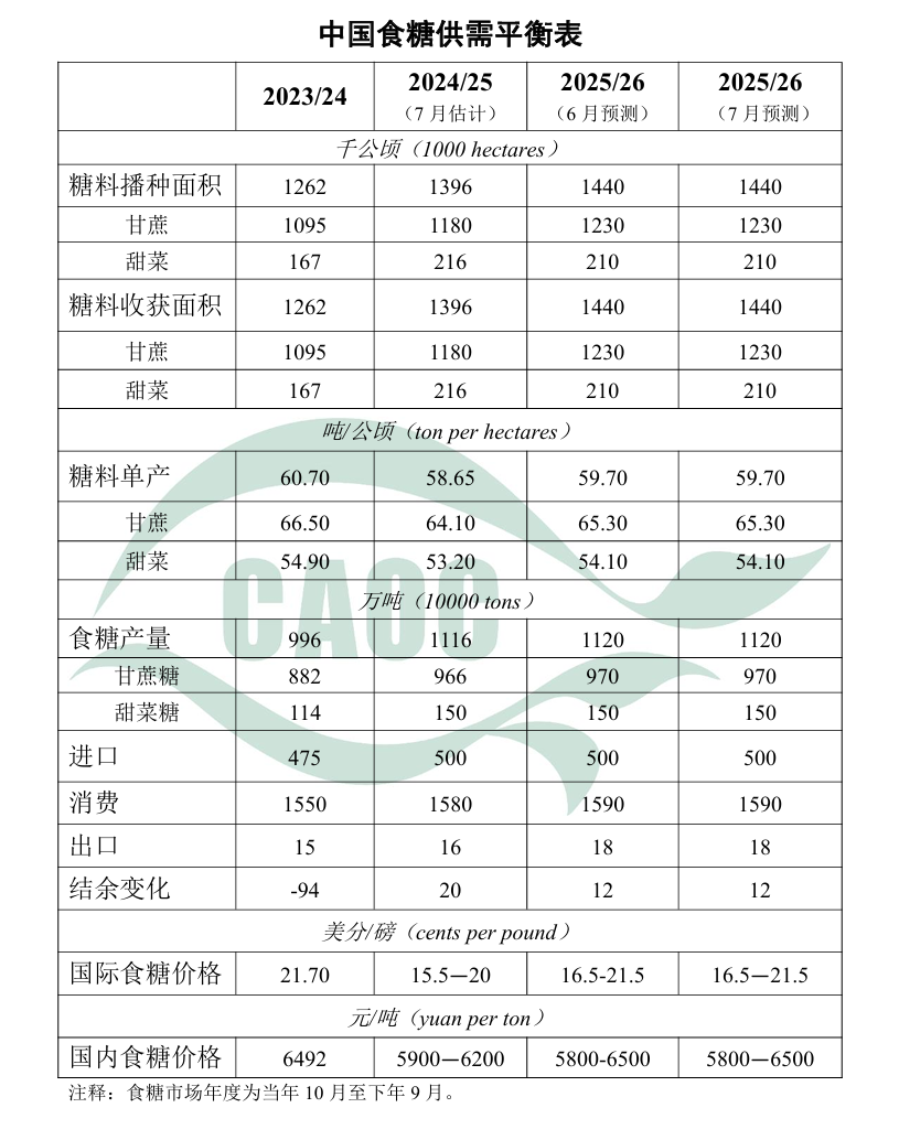 本月对2025/26年度食糖供需形势预测与上月一致。广西连旱影响甘蔗生长,甜菜产区降水多或致病虫害。国际上,关注巴西产糖及北半球糖料生长情况。