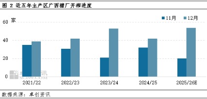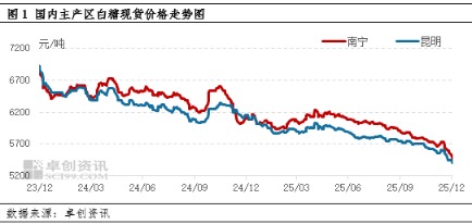 11月下旬,广西新糖供应量稳步递增,糖厂降价走量意向转浓,广西南宁价格跌破5000元/吨关口。预计12月糖价或震荡走低。