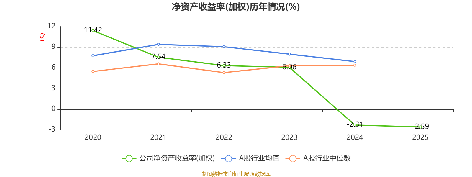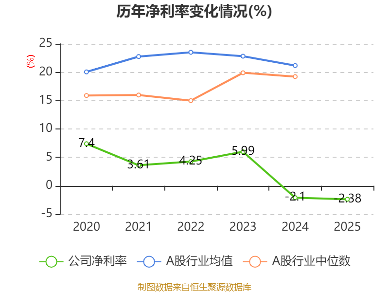 数据显示,2025年公司平均净资产收益率为-2.59%,较上年同期下降0.28个百分点。