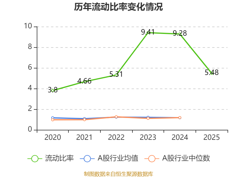 2025年,公司流动比率为5.48,速动比率为5.37。