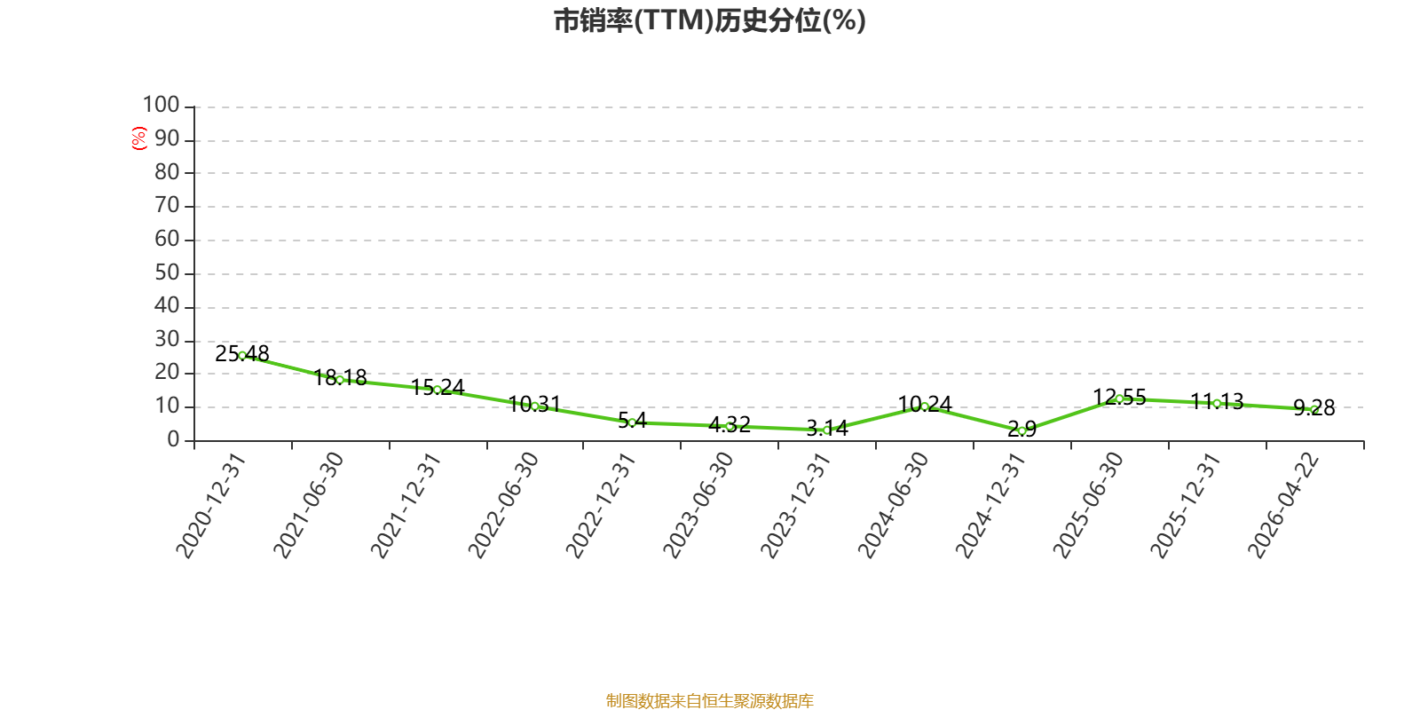 以4月22日收盘价计算,联华超市目前市净率(TTM)约-2.77倍,市销率(TTM)约0.02倍。