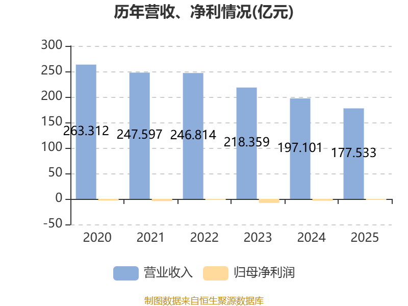 中证智能财讯联华超市(00980)4月22日披露2025年度报告。报告期内,公司实现营业收入177.53亿元,同比下降9.93%;归母净利润亏损2亿元,上年同期亏损3.59亿元;经营活动产生的现金流量净额为-5.63亿元,上年同期为12.58亿元;据报告显示,联华超市基本每股收益为-0.14元。