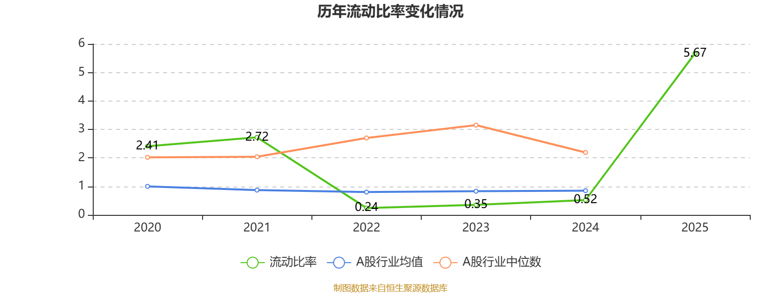 2025年,公司流动比率为5.67。