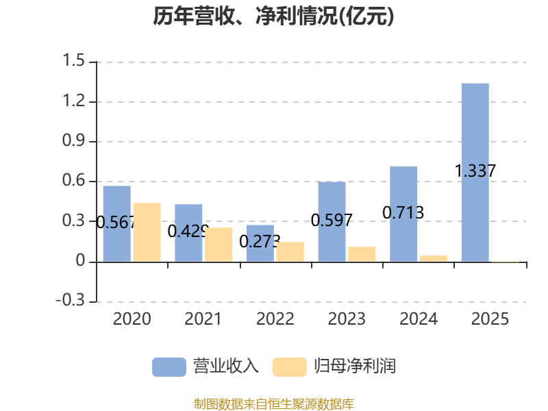 中证智能财讯中国艺术金融(01572)4月22日披露2025年度报告。报告期内,公司实现营业收入1.34亿元,同比增长87.33%;归母净利润亏损48.8万元,上年同期盈利452.3万元;经营活动产生的现金流量净额为-4.01亿元,上年同期为-4780.2万元;据报告显示,中国艺术金融基本每股收益为-0.0003元,平均净资产收益率为-0.04%。
