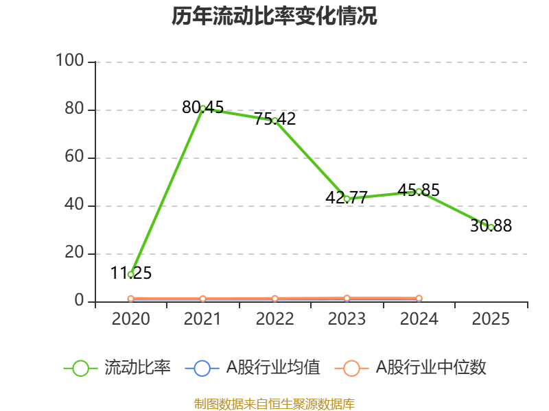 2025年,公司流动比率为30.88,速动比率为20.56。