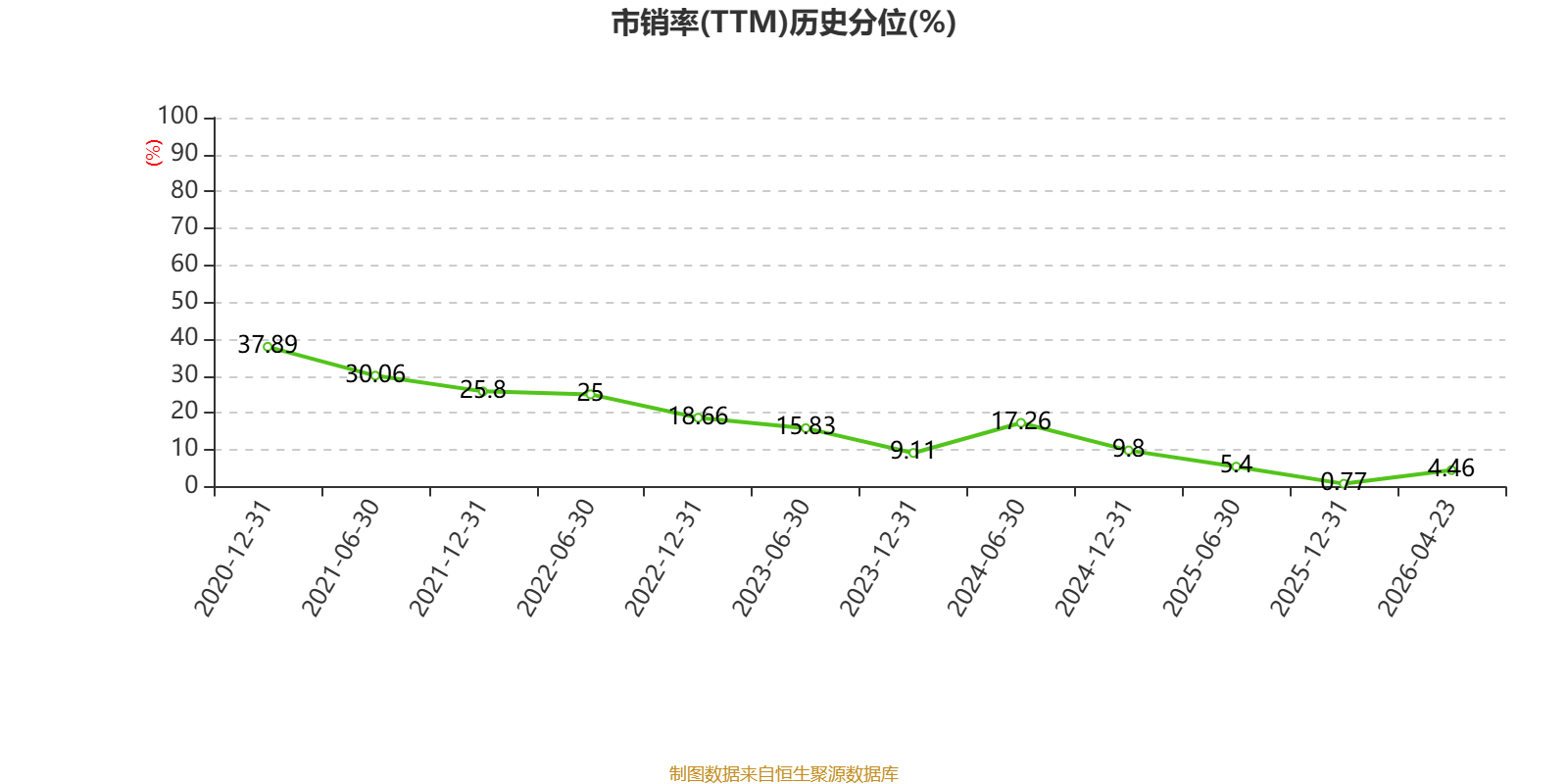 以4月23日收盘价计算,卓尔智联目前市盈率(TTM)约7.67倍,市净率(TTM)约0.08倍,市销率(TTM)约0.01倍。