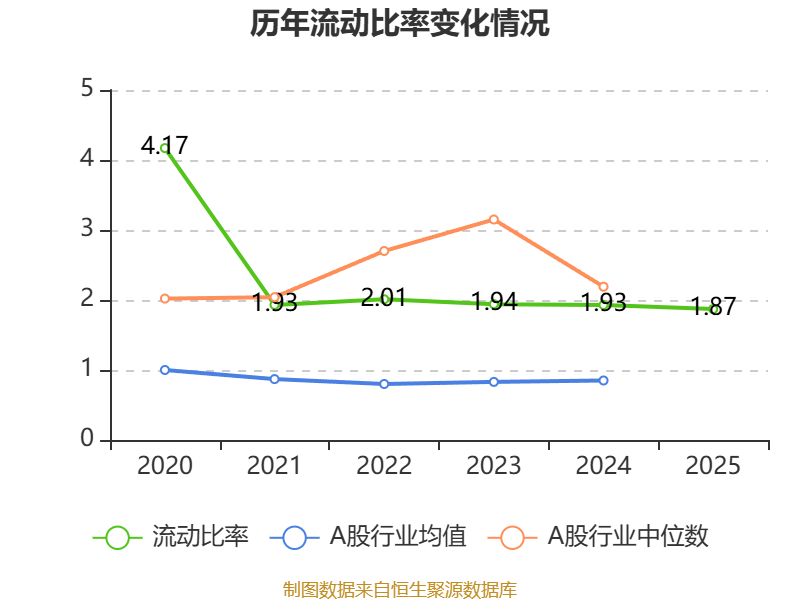 2025年,公司流动比率为1.87,速动比率为1.63。