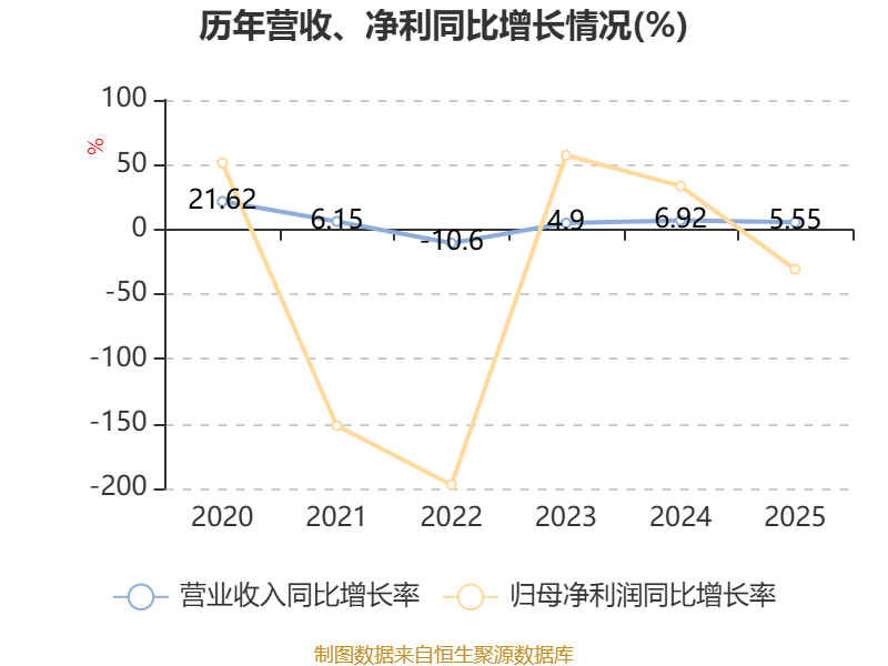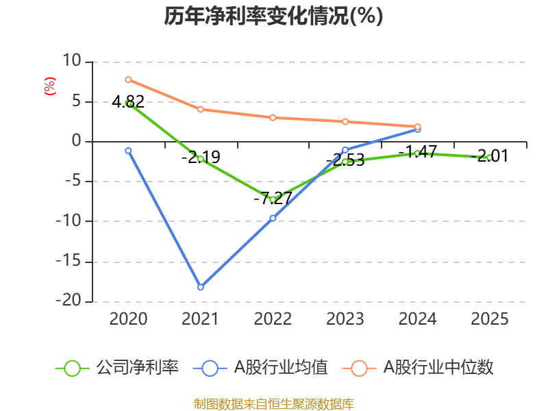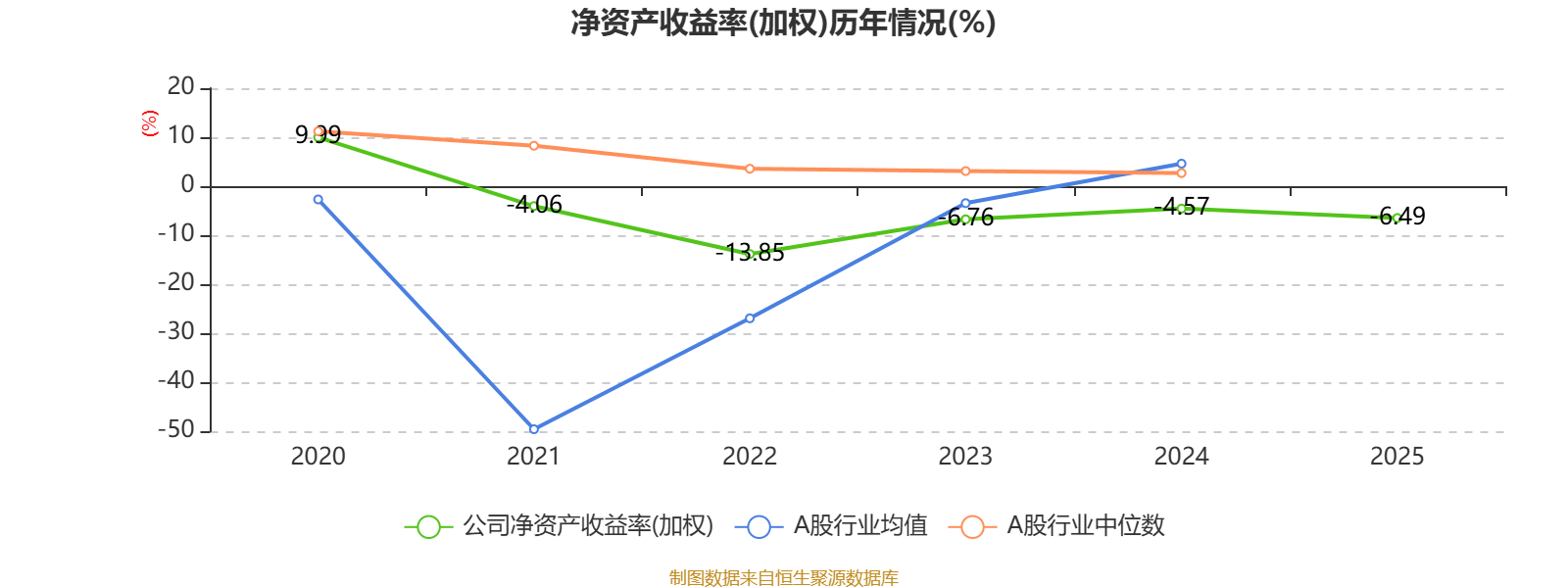 数据显示,2025年公司平均净资产收益率为-6.49%,较上年同期下降1.92个百分点。