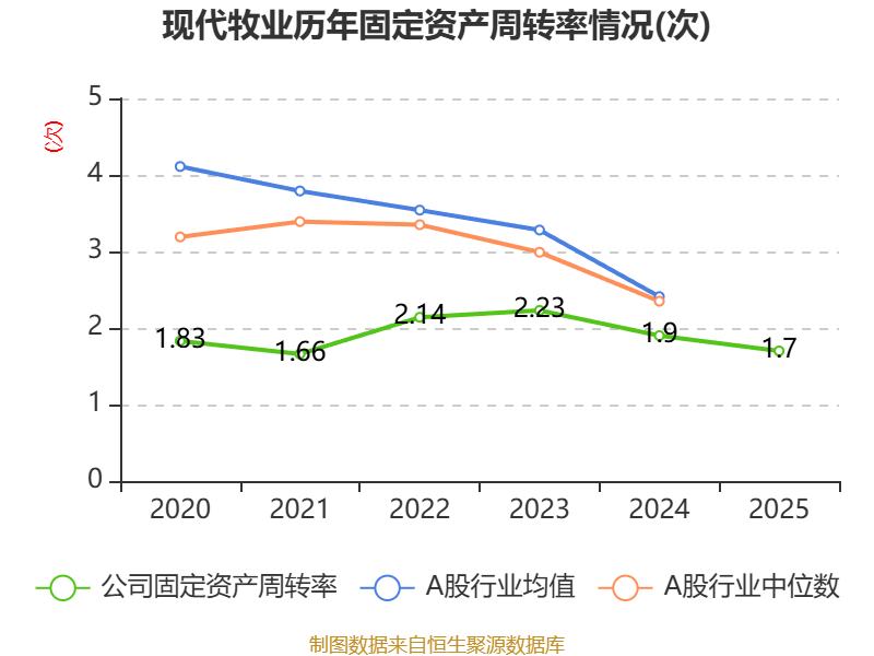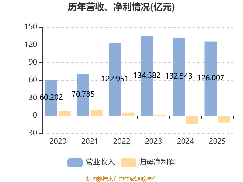 中证智能财讯现代牧业(01117)4月23日披露2025年度报告。报告期内,公司实现营业收入126.01亿元,同比下降4.93%;归母净利润亏损11.29亿元,上年同期亏损14.17亿元;经营活动产生的现金流量净额为25.02亿元,同比增长4.11%;据