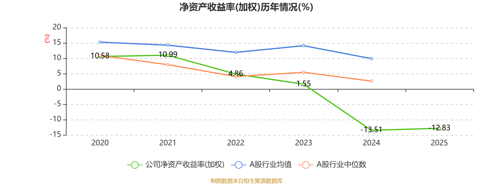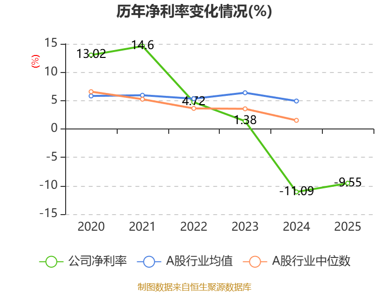 数据显示,2025年公司平均净资产收益率为-12.83%,较上年同期上升0.68个百分点。