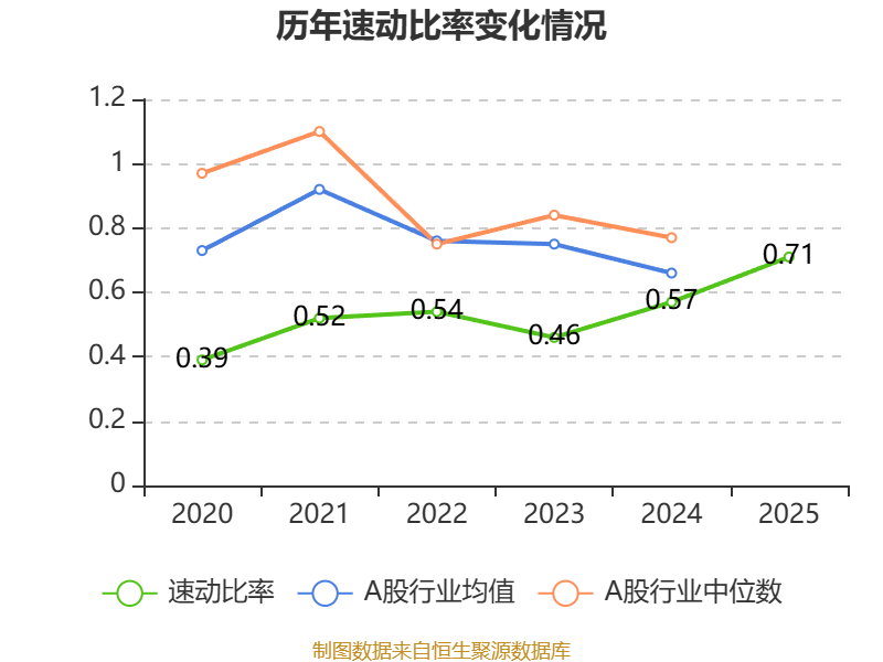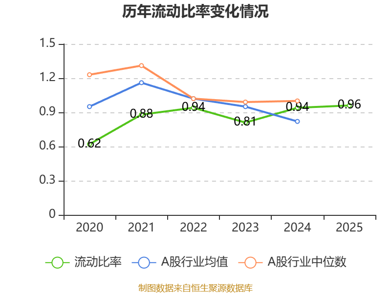 2025年,公司流动比率为0.96,速动比率为0.71。
