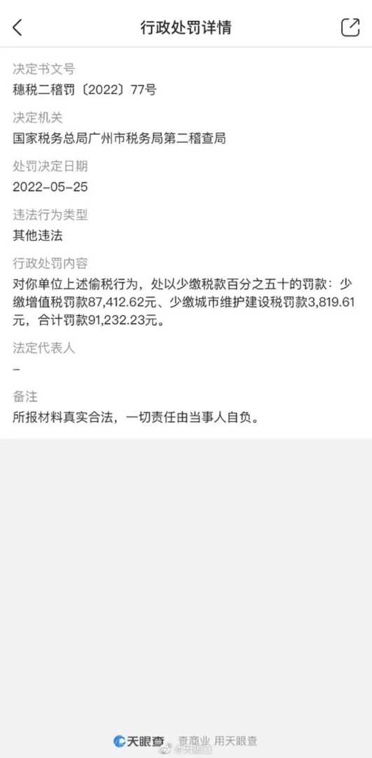 据天眼查数据显示,广州本宫餐饮服务有限公司,即“本宫的茶”的关联公司,因偷税行为被广州市税务局第二稽查局处以罚款。该公司被曝出在2019年至2020年期间,取得加盟费等收入527.83万余元(含税),却未确认销售收入且未申报缴纳相关税费,导致偷税数额达到18.25万元。