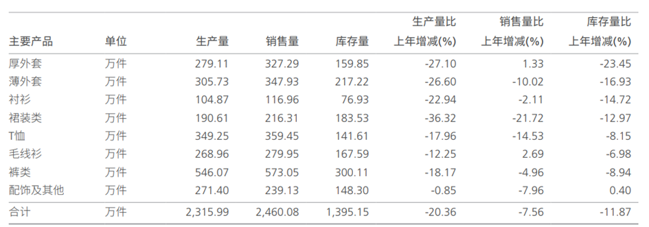 从产品端看,2025年太平鸟各品类销量大多数处于下滑态势:薄外套、衬衫、裙装类、T恤、裤类、配饰及其他销售量同比分别减少10.02%、2.11%、21.72%、14.53%、4.96%和7.96%。仅厚外套、毛线衫销售量实现增长,同比涨幅分别为1.33%和2.69%。