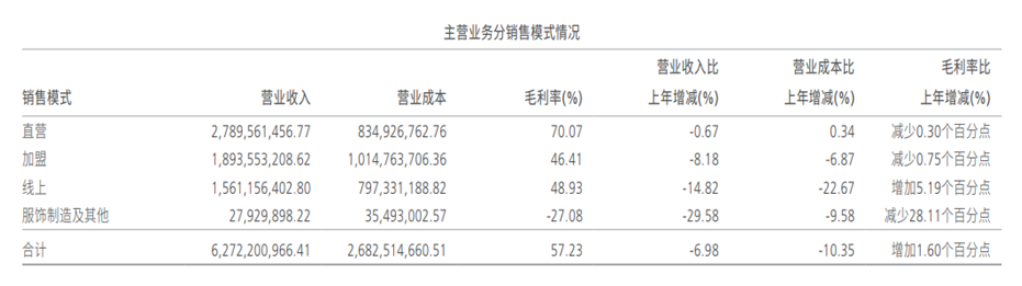 渠道作为服装企业的核心竞争力之一,太平鸟多年来构建了“直营+加盟+线上”的全渠道矩阵,试图实现线上线下协同发展。但2025年,各渠道均出现不同程度的下滑,渠道优化效果未达预期,线上线下双重承压,成为业绩下滑的重要推手之一。