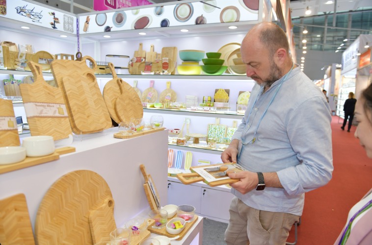 4月24日,第139届广交会二期开展第二天,展馆内人头攒动,洽谈气氛热烈。本届广交会第二期聚焦“品质家居”主题,展览面积达51.5万平方米,设2.5万个展位,并首次设立时尚饰品、竹木餐具、竹木家居用品、集成房屋及庭院设施四个全新专区。其中,“竹木餐具”专区作为本届新增的绿色低碳题材专区,让餐具这一日常消费品成为展示中国外贸“绿色名片”的重要赛道。