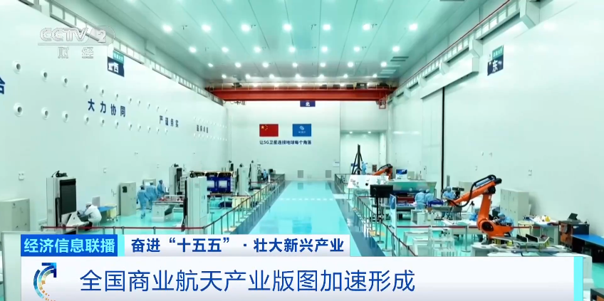 在江苏南通的一家企业的卫星总装车间,一条脉动式生产线正在运转,在这里一颗卫星的制造周期最快只需要3天。汽车电子、精密加工、消费电子、地面通信,多个传统产业链正在融入航天领域。