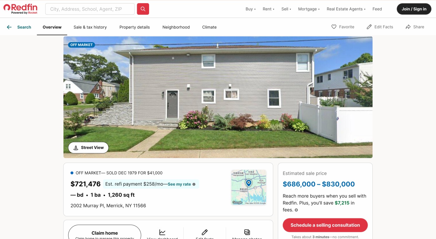 按照此公司登记的地址,界面新闻在美国房产网站及谷歌地图上看到,这里是一处面积约117平米的普通民宅,售价约70万美元,有记录的最后一次交易在1979年,同时今年3月份,有房产公司将其挂出后迅速又下架。