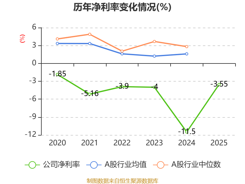 数据显示,2025年公司平均净资产收益率为-23.7%,较上年同期上升34.45个百分点。