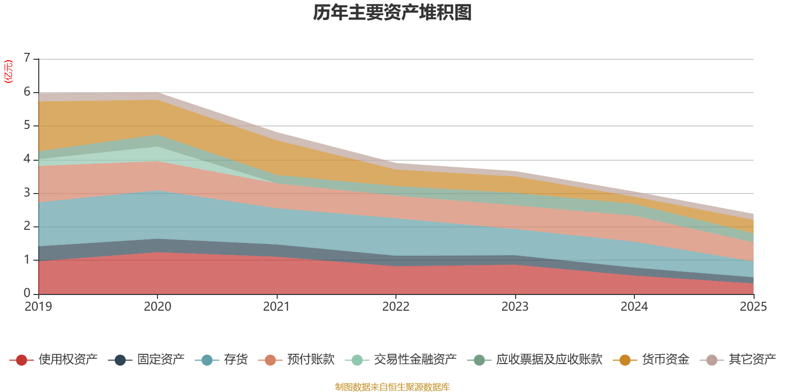 资产重大变化方面,截至2025年末,公司货币资金较上期末增加90.71%,占公司总资产比重上升9.97个百分点;存货较上期末减少39.32%,占公司总资产比重下降5.72个百分点;使用权资产较上期末减少43.04%,占公司总资产比重下降4.9个百分点;预付账款较上期末减少26.02%,占公司总资产比重下降1.39个百分点。