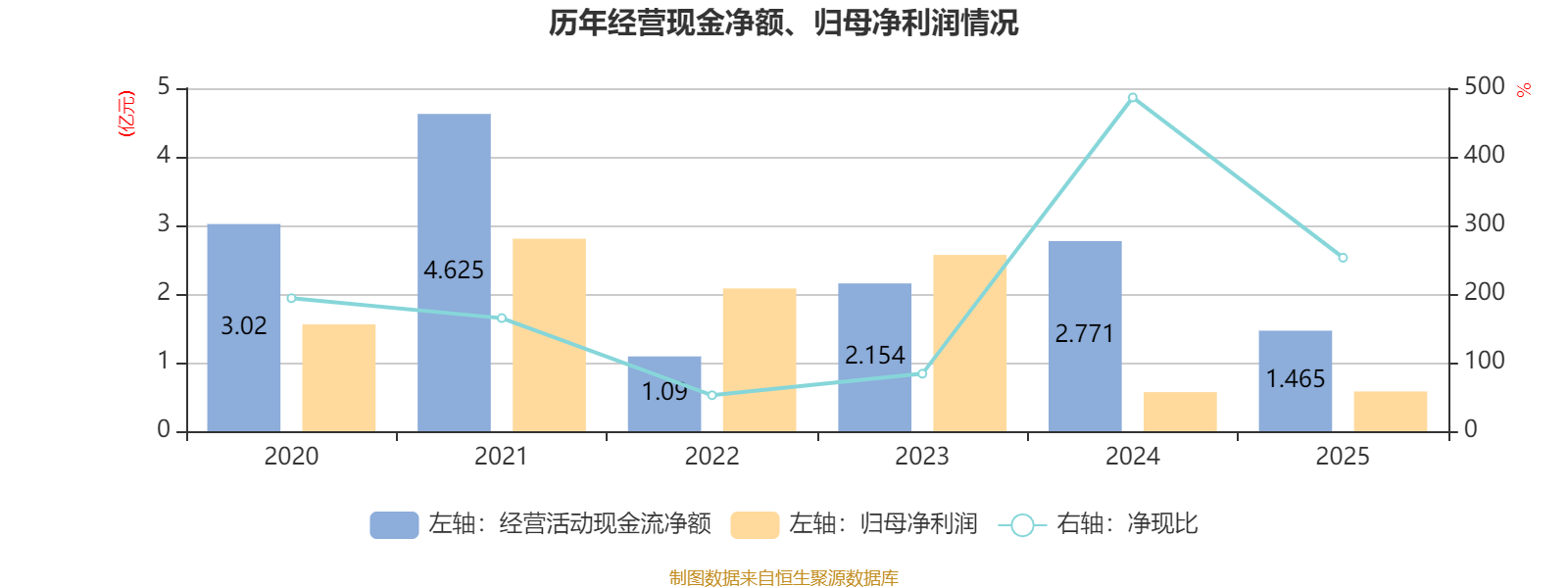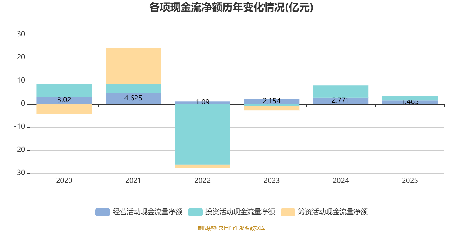 2025年,公司经营活动现金流净额为1.47亿元,同比下降47.13%;筹资活动现金流净额-488万元,同比减少208.7万元;投资活动现金流净额1.89亿元,上年同期为5.2亿元。