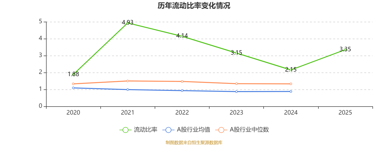 2025年,公司流动比率为3.35。
