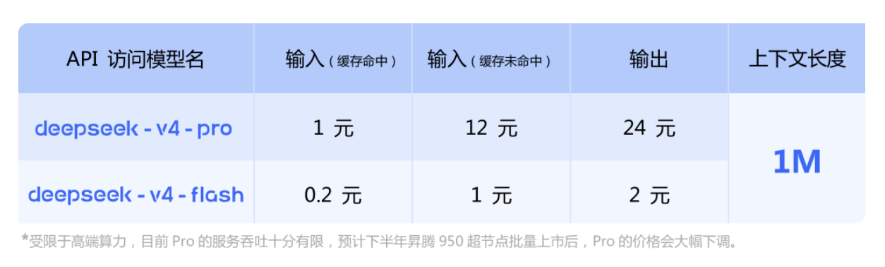 与此同时,这一生态成本未来或能够进一步降低。DeepSeek表示,受限于高端算力,目前Pro的服务吞吐十分有限,预计下半年昇腾950超节点批量上市后,Pro的价格会大幅下调。