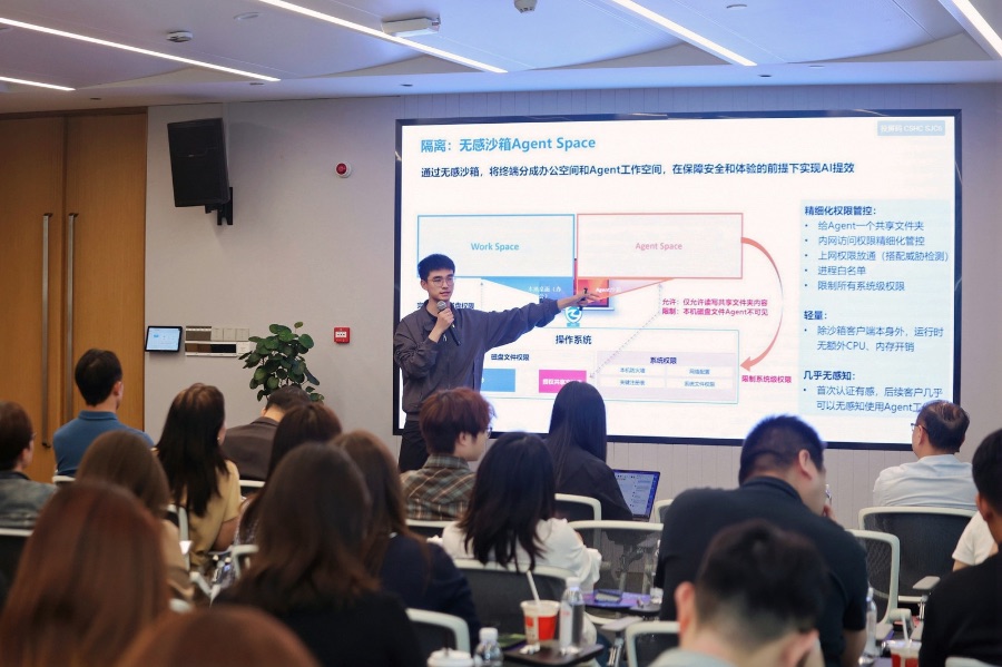 他指出,终端Agent模式虽能最大化释放AI办公效能,却也是安全风险的高发环节。企业需建立“效率与安全并重”的管理思维,依托无感沙箱隔离、最小权限分级管控、终端与网络联动监测等科学治理模式,通过环境隔离、插件准入审核、权限精细化划分、全流程行为审计等组合管控手段,在充分释放AI提效价值的基础上,全面守护企业数据安全、业务合规与经营稳定。