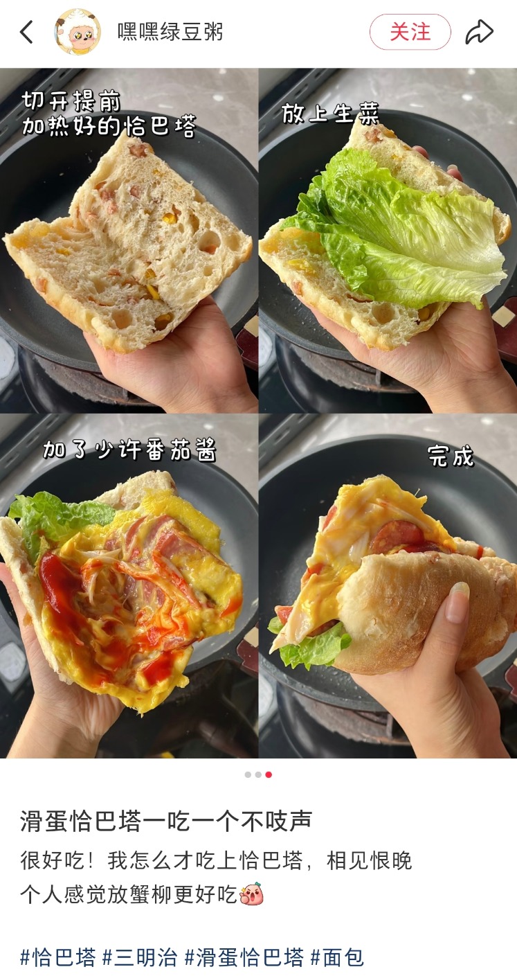 有人用恰巴塔搭配蔬菜和中式萝卜丝肉丸,将西式恰巴塔变成中餐,并调侃“中国胃自有妙招”。这种“西式皮囊包裹中式灵魂”的吃法,被网友们戏称为“更适合中国宝宝的肉夹馍”。
