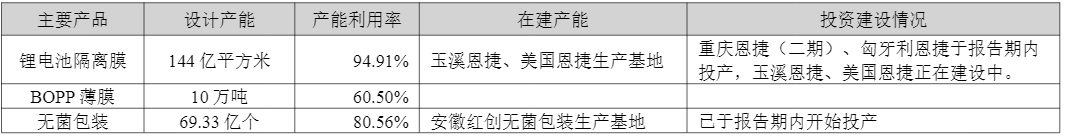 - 玉溪恩捷是一个年产16亿平方米的隔膜项目,这一项目计划投资45亿元,截至2025年末已投入20.03亿元,项目进度54.73%。
