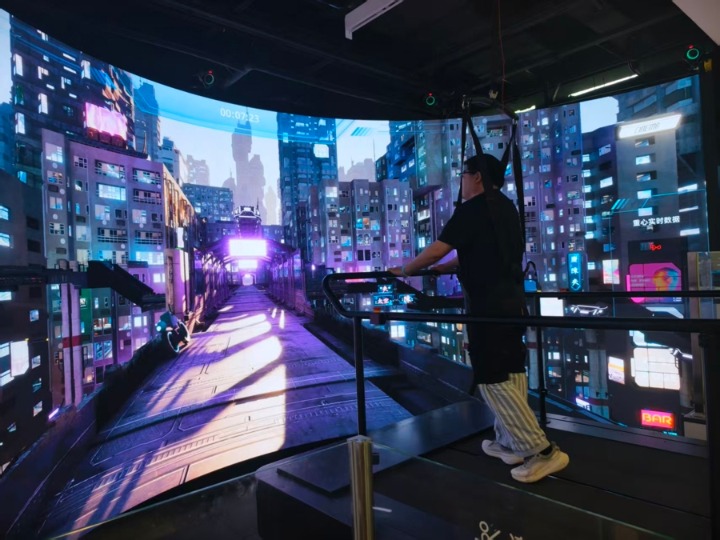 场景是“伽利略”系统的核心。它通过虚拟现实与机器人技术,集成了30多种功能模块,可以模拟公交车和地铁出行、红绿灯急行、上下坡行走、轮椅、划船等真实场景,且可同步检测脑电、肌电等生理指标。最近,系统又“上新”了12通道嗅觉刺激,成为全球唯一具备嗅觉刺激功能的康复训练与生物力学评估平台。