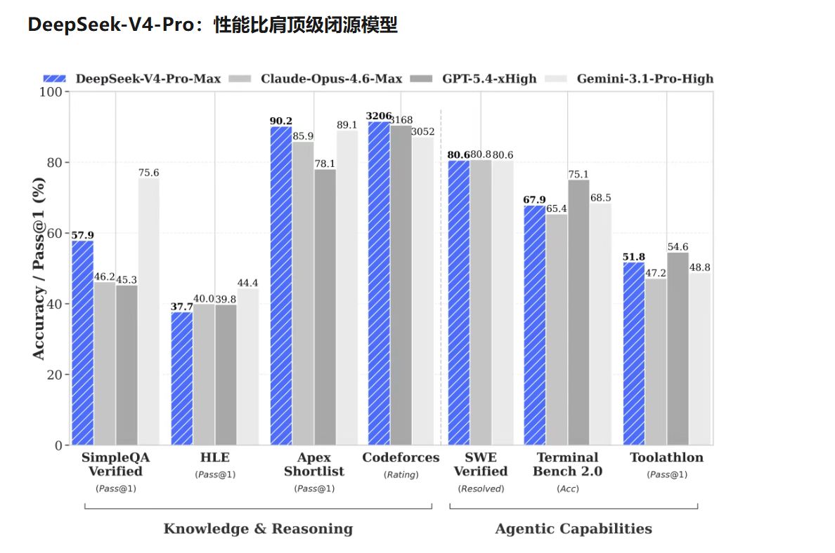 4月24日,DeepSeek-V4预览版正式发布并同步开源,号称在Agent能力、世界知识与推理性能三大维度达到国内及开源领域领先水平。