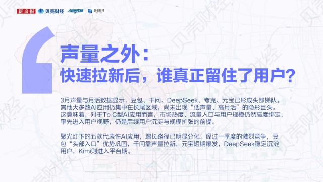 换言之,中国AI应用市场正在经历从“破圈”走向“留存”的阶段转换,前者决定谁先进入公众视野,后者决定谁能真正留在牌桌上,成为下一代流量入口。