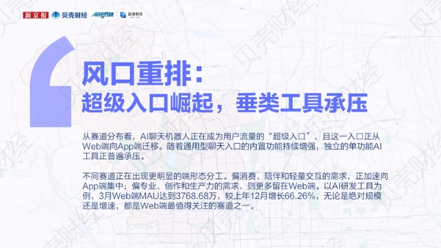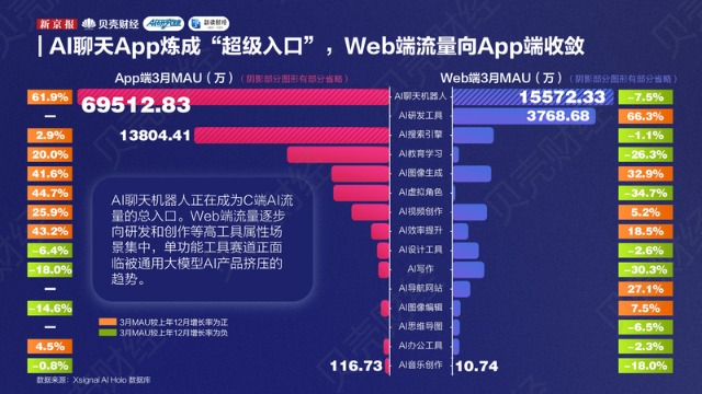 从赛道分布看,AI聊天机器人正在成为用户流量的“超级入口”,且这一入口正加速向移动端(App)迁移。